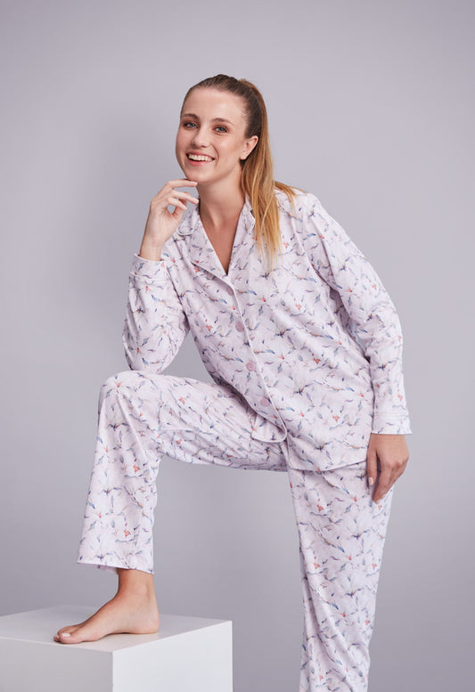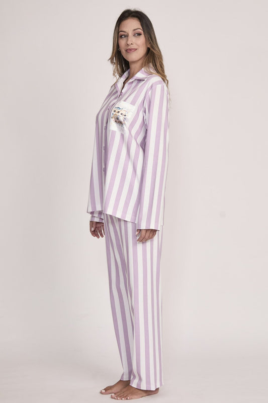 Pijama Luana Pantalón 100% algodón Premium - Buhos Dormilones Lila Collection