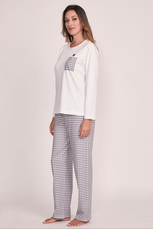 Pijama Mariana 100% algodón Premium - Mini Vichy Gris Collection